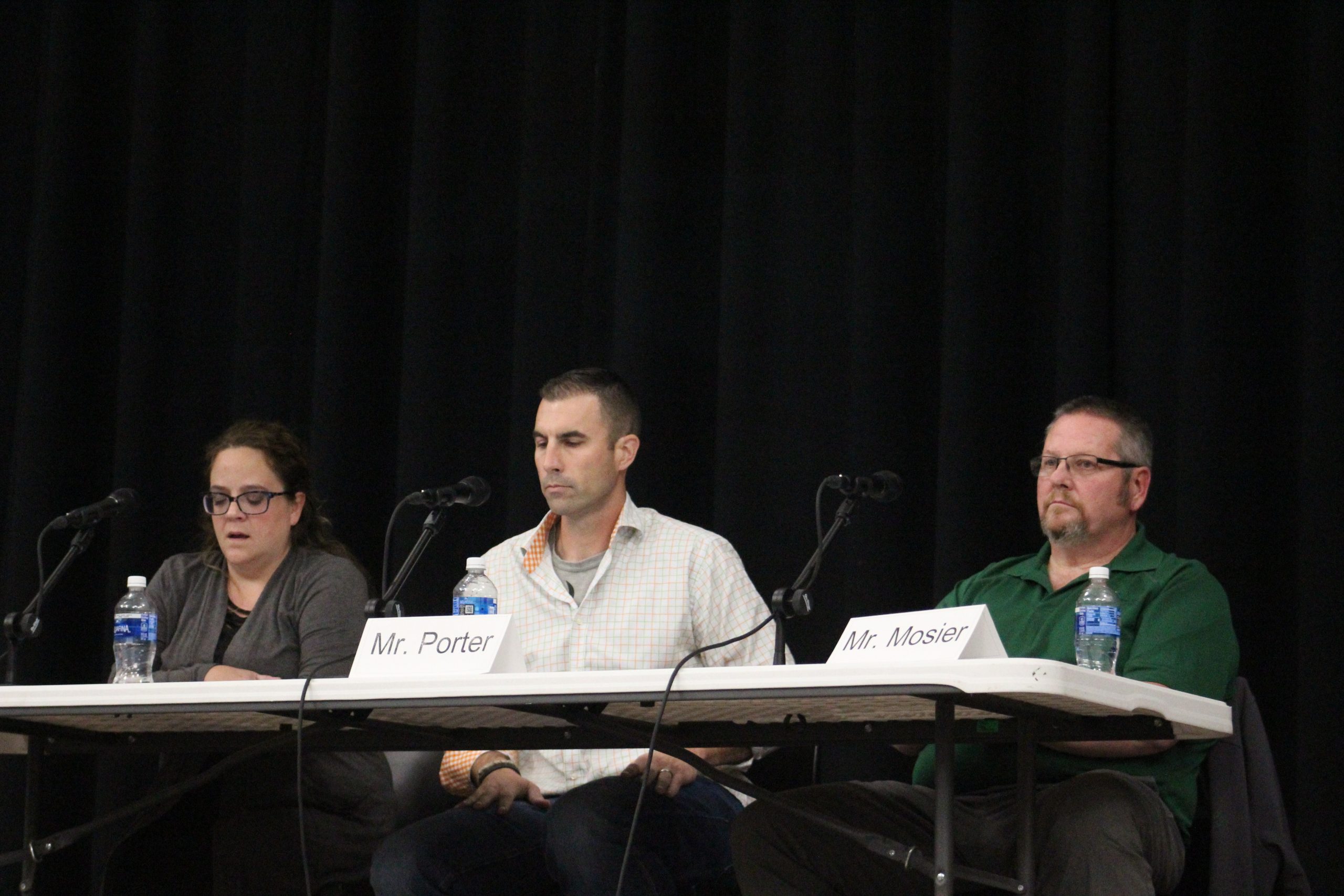 Doug Mosier, Adam Porter and Melissa Walker gave opening and closing statements and answered eight questions, read by seniors Jayla Graham and Josh Shambre. Each candidate had 90 seconds to respond to each inquiry.