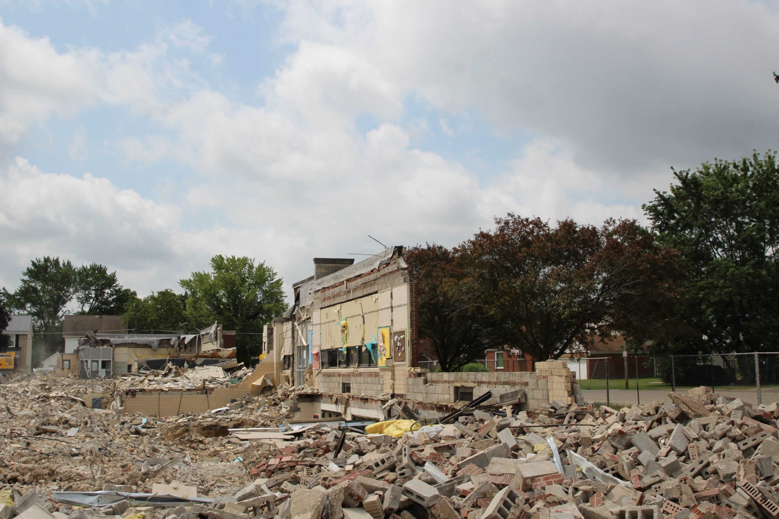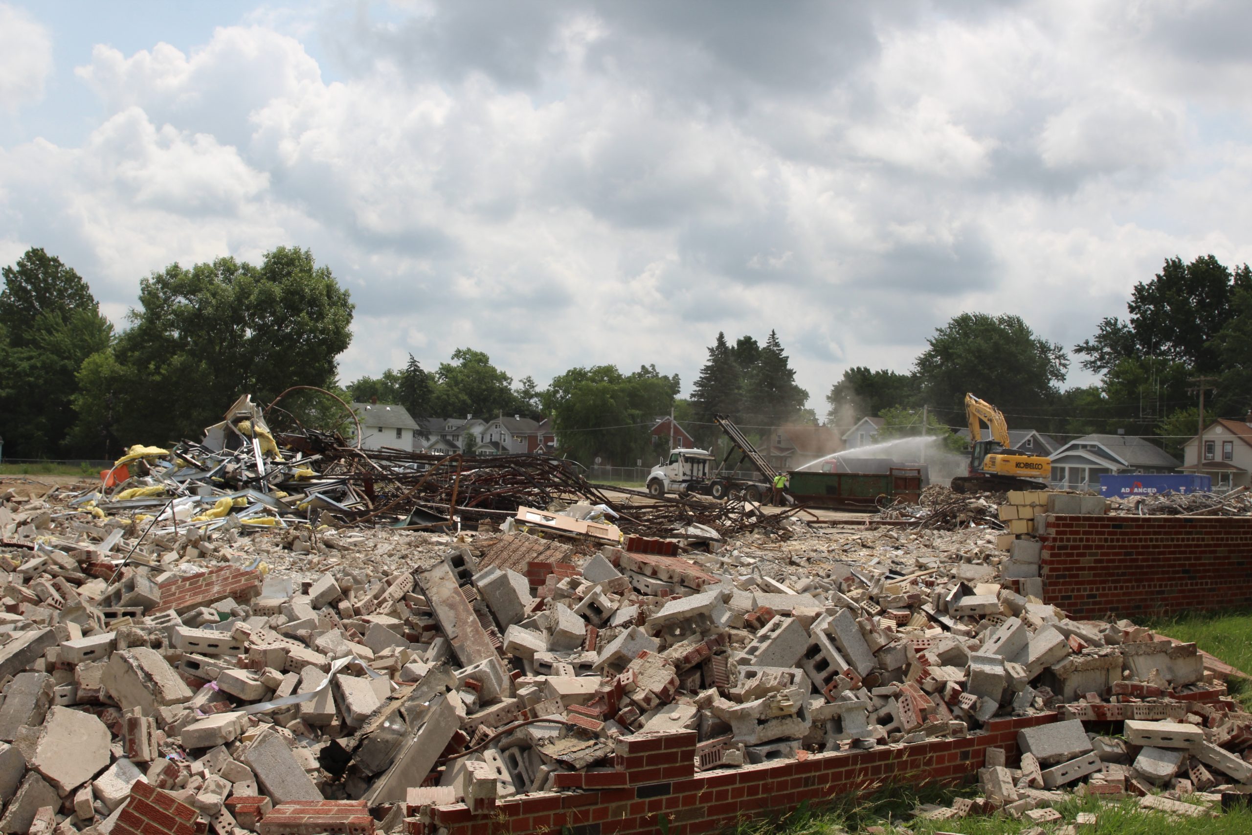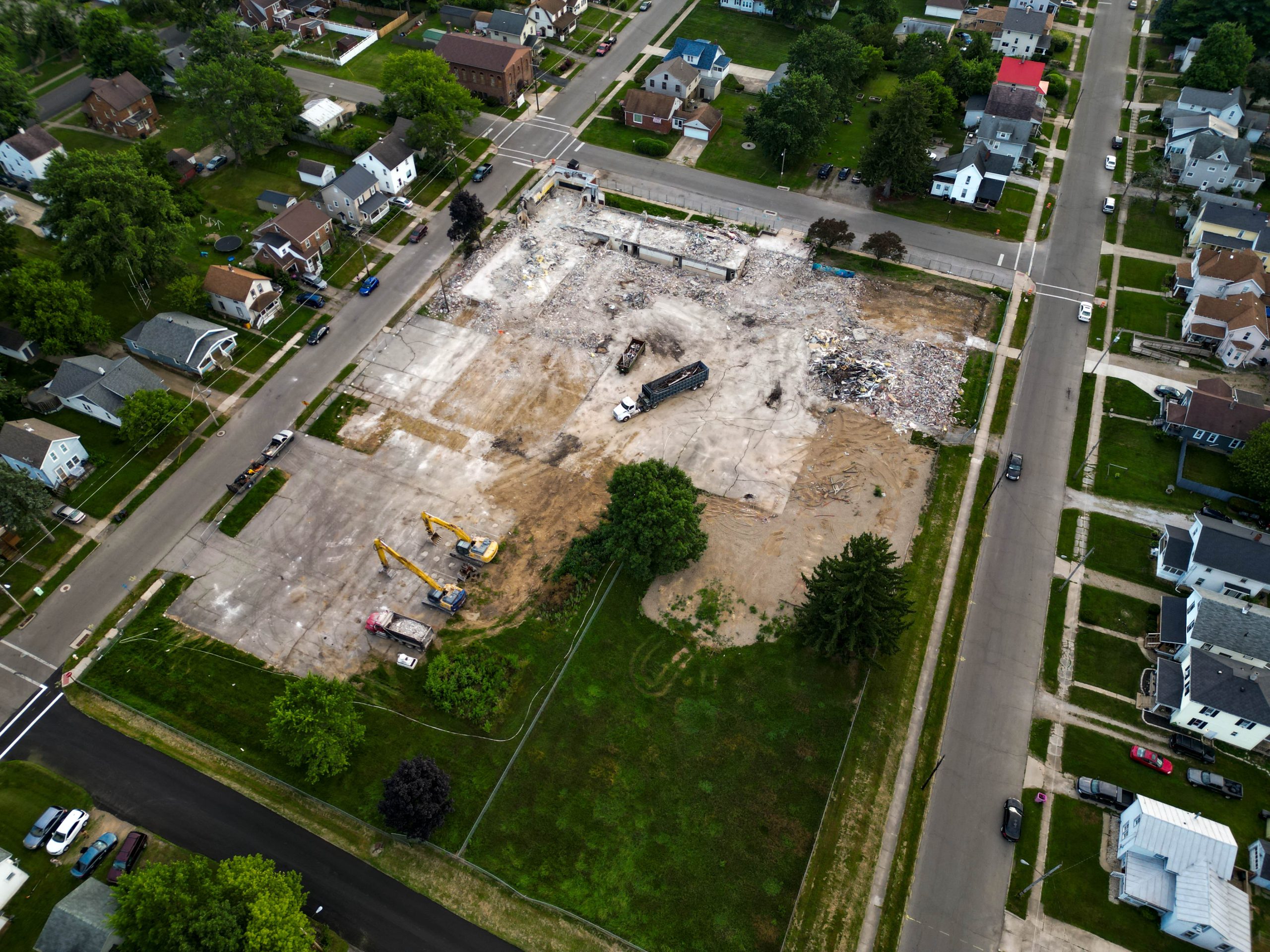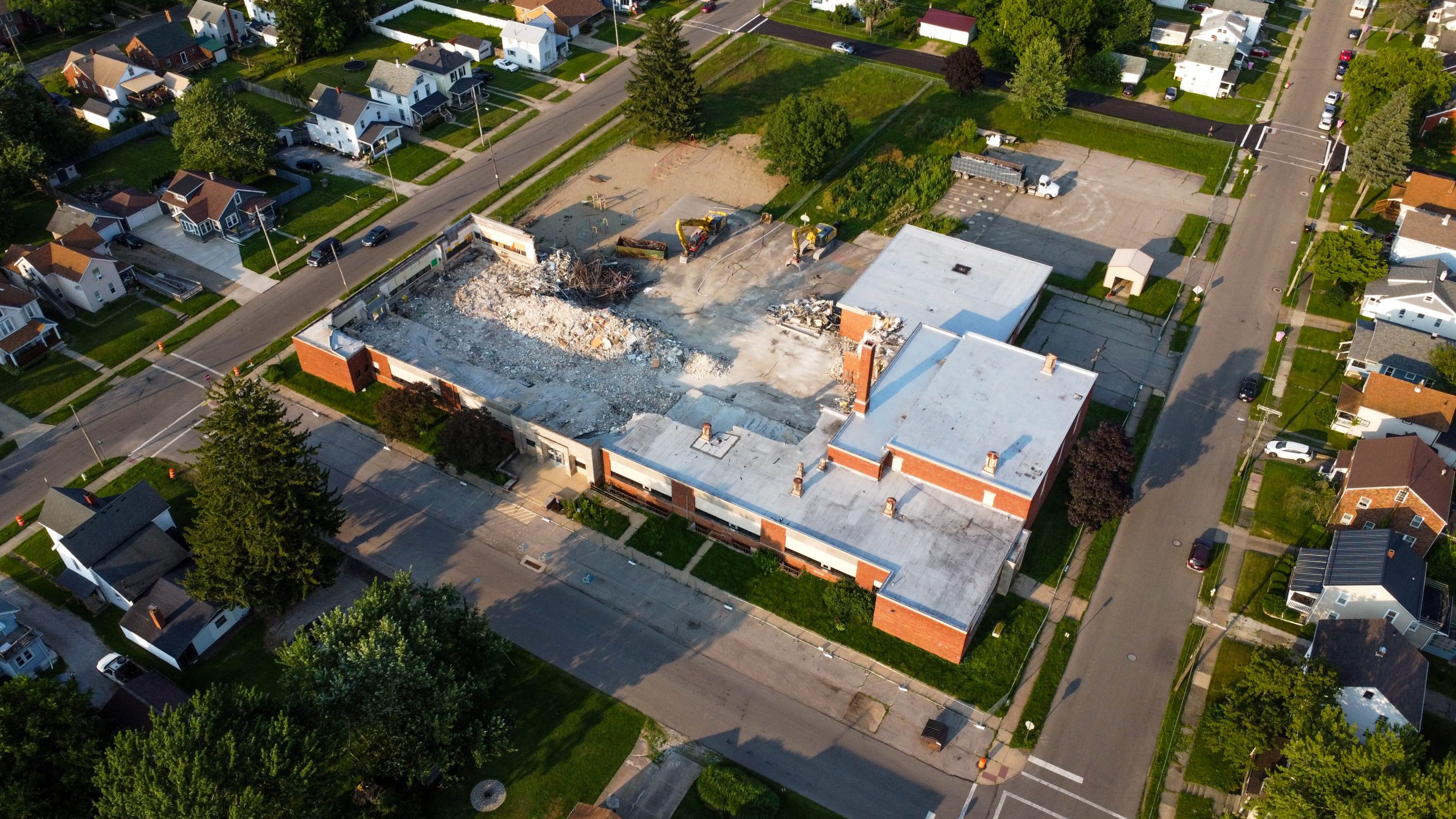 A drone image captured by Josh Langoehr shows Prospect Elementary near the end of its demolition on July 22.