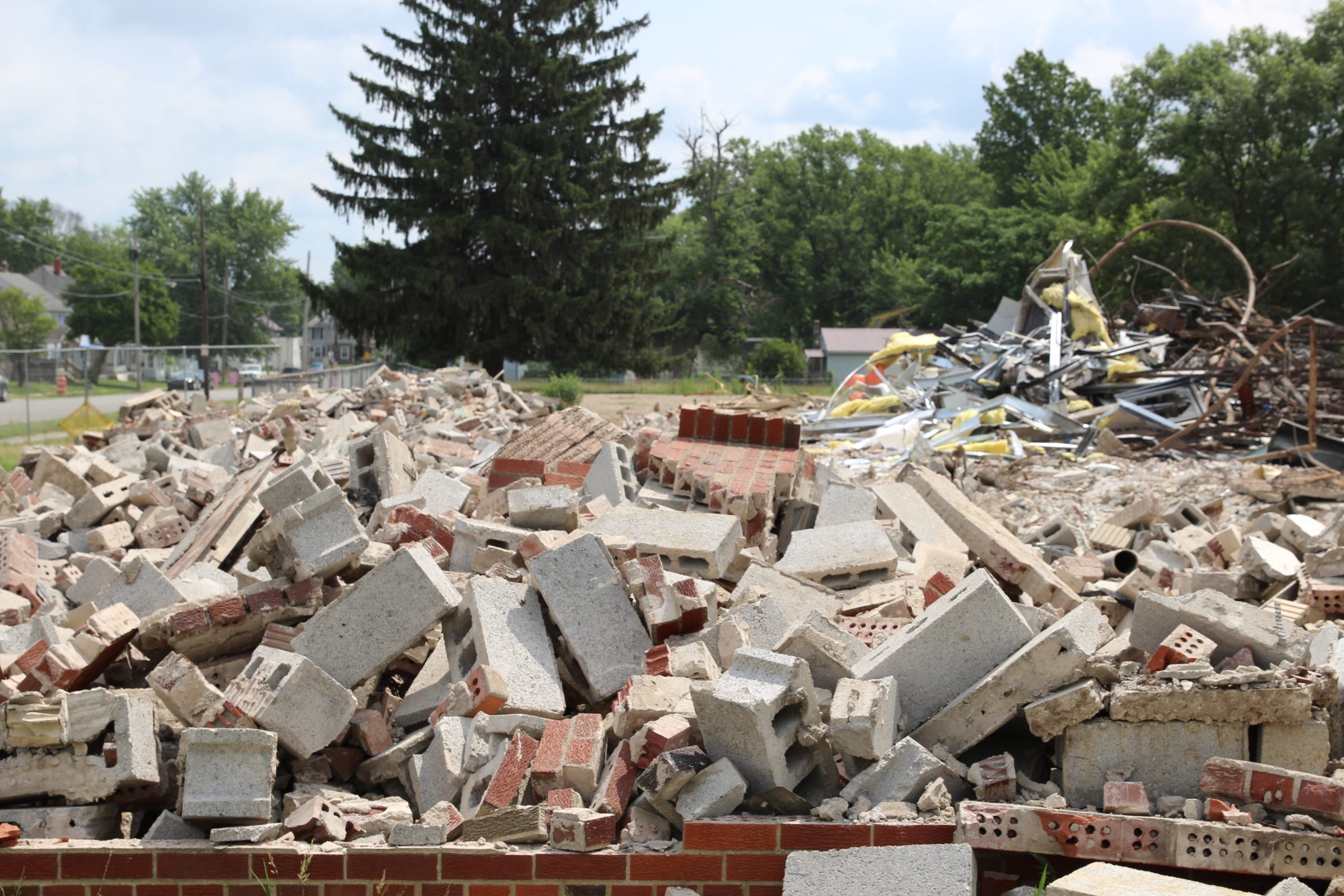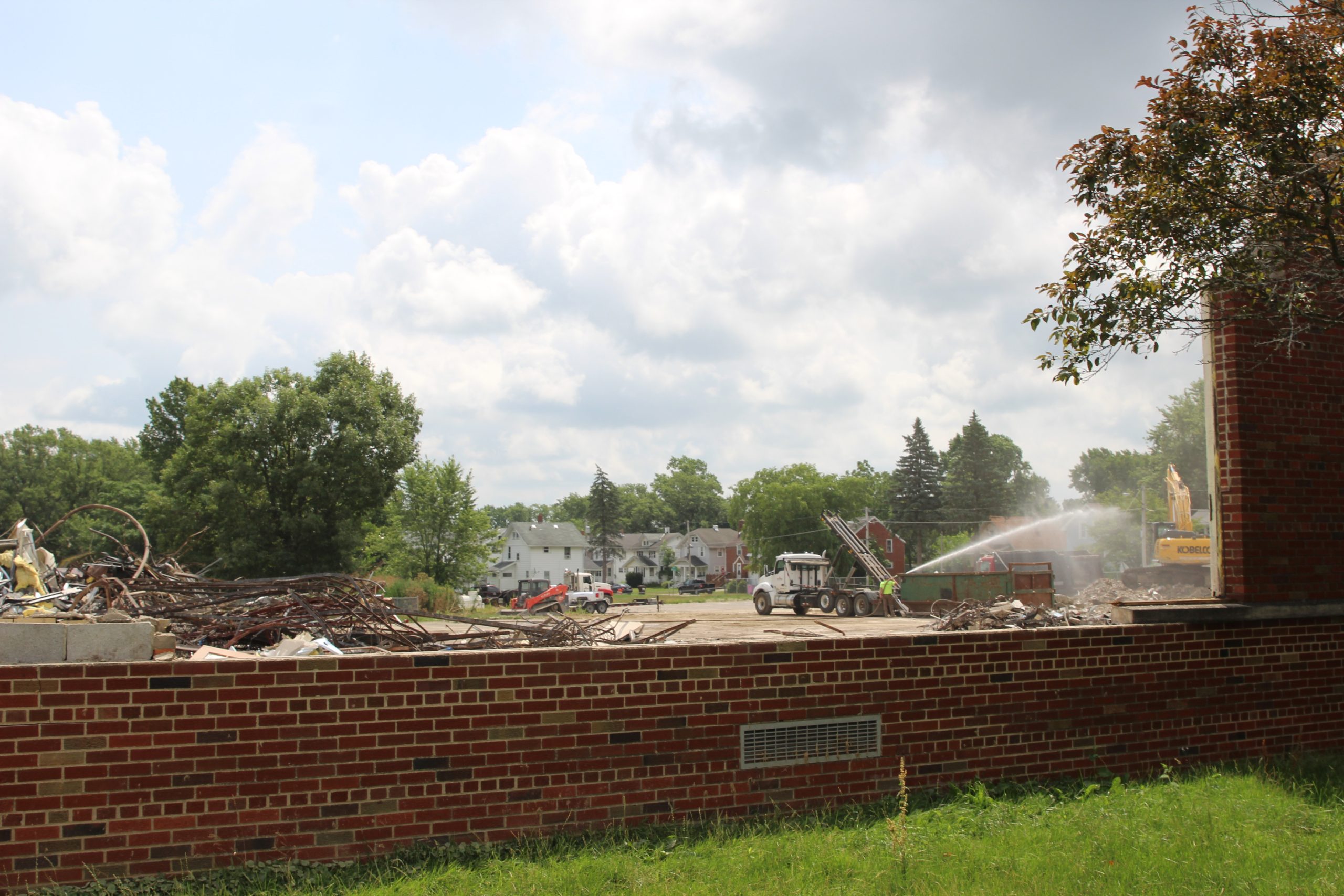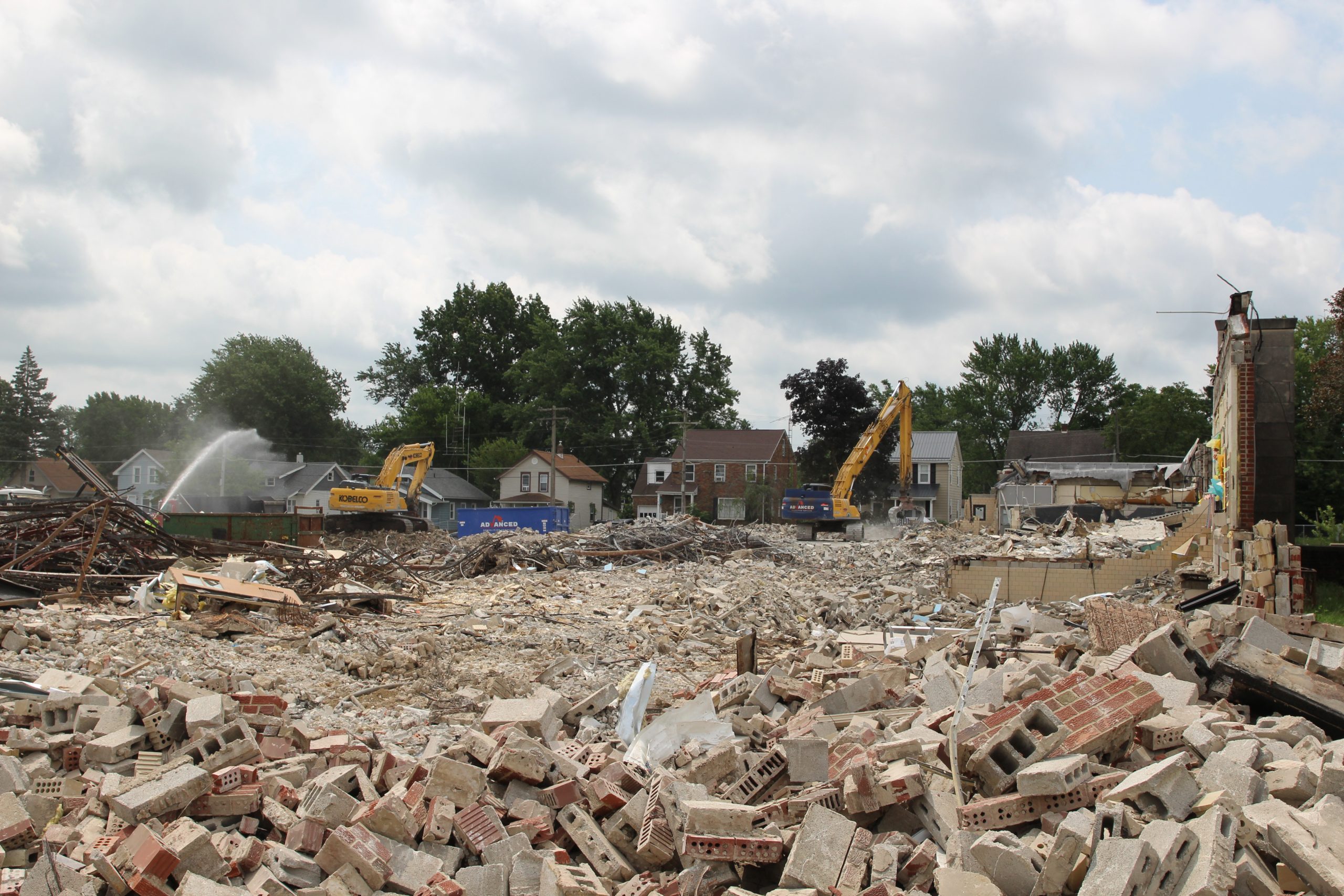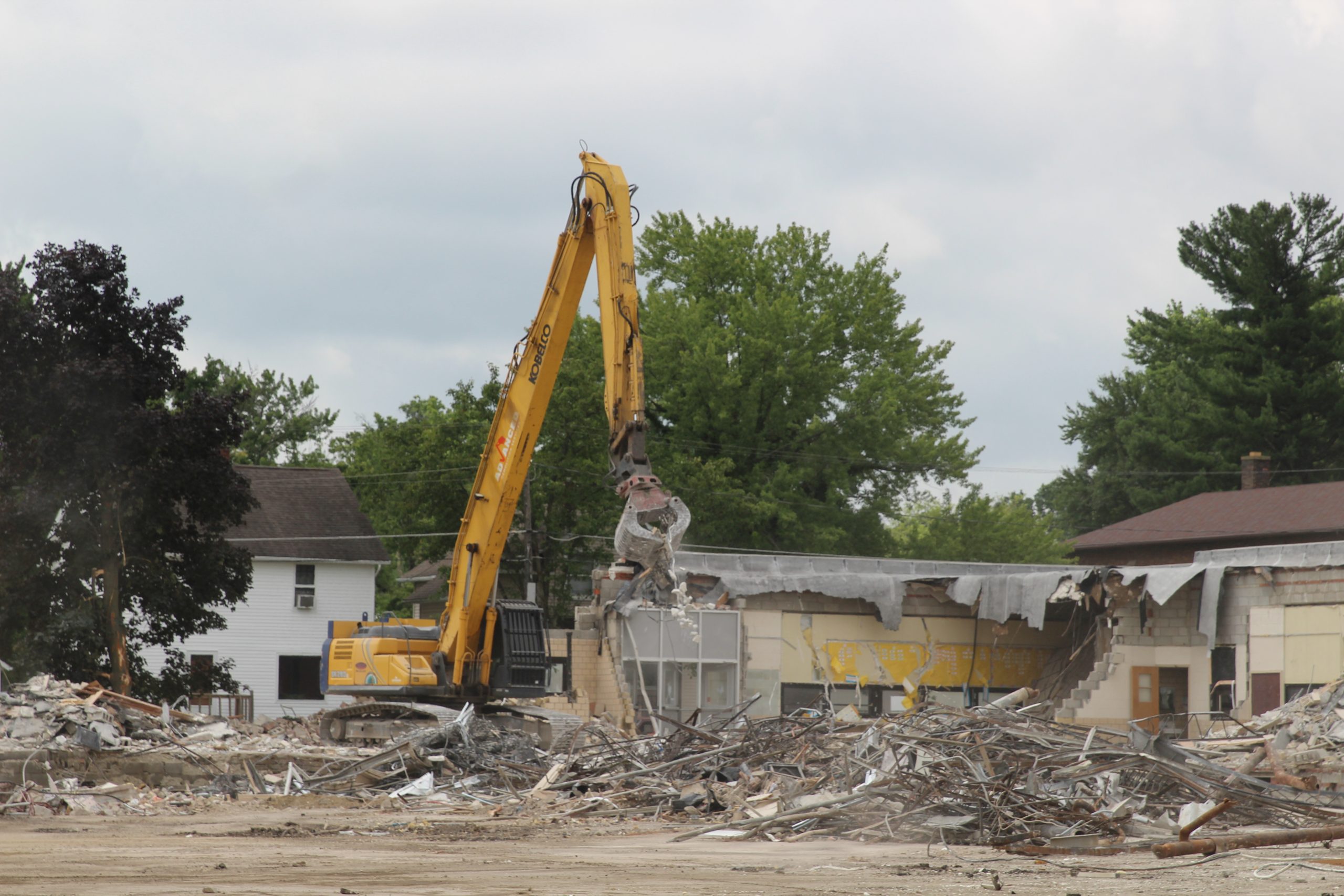 A drone image captured by Josh Langoehr shows Prospect Elementary near the end of its demolition on July 22.