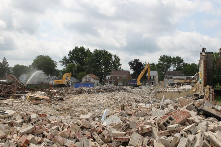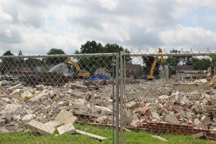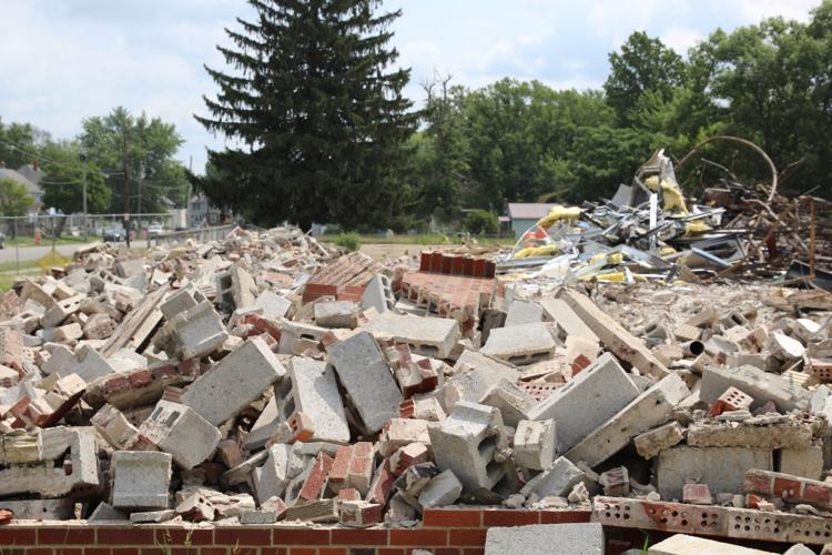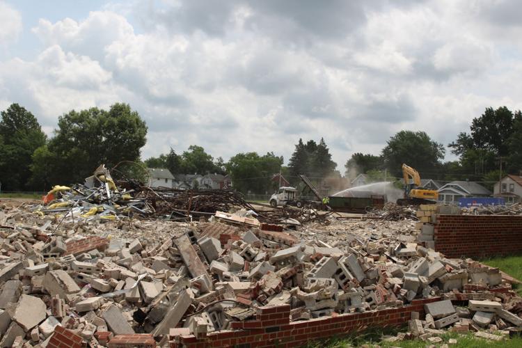 MANSFIELD — The city block once home to Prospect Elementary School sat covered in heaps of brick and concrete as crews continued their work Thursday morning.