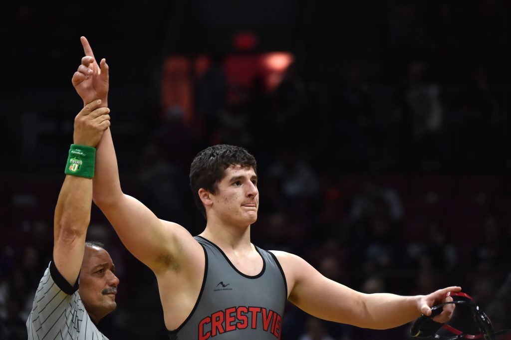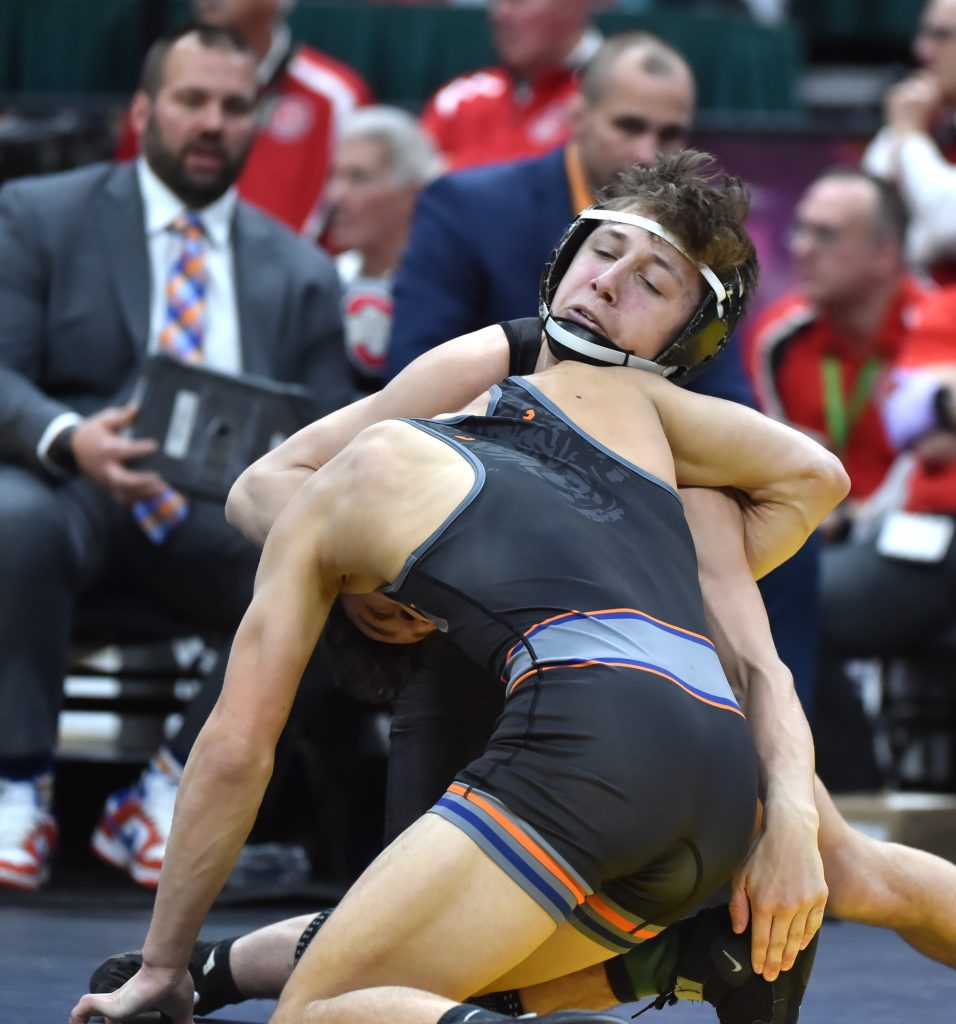 He need only 1:14 to dispatch Conneaut’s Scotty Edwards in the quarterfinals before sticking Dalton’s Cohen Riggenbach in the third period of Saturday evening’s semifinals, providing fans with one of the most memorable moments of the three-day spectacle.