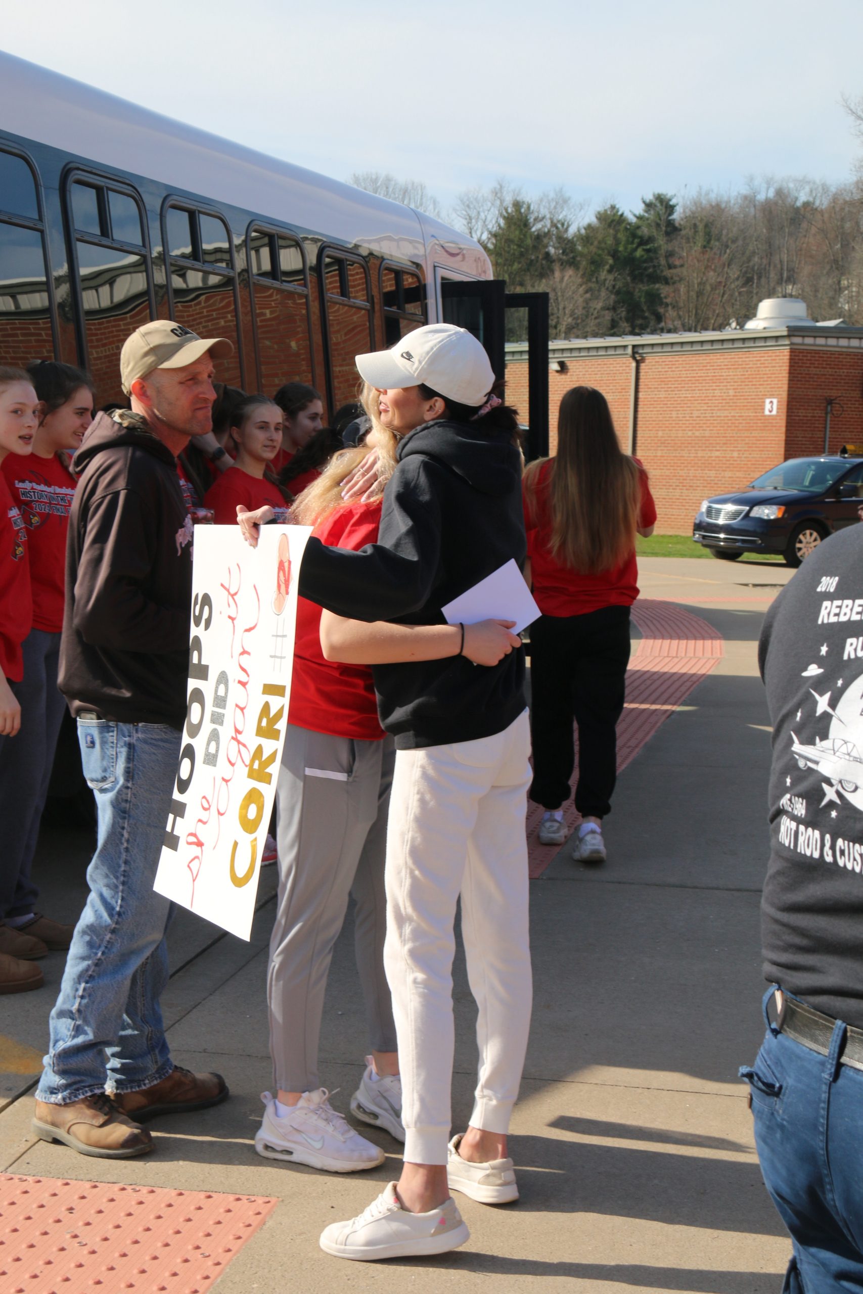 The Redbirds piled onto their team’s bus and left Loudonville with a crowd at the high school cheering them as they departed.