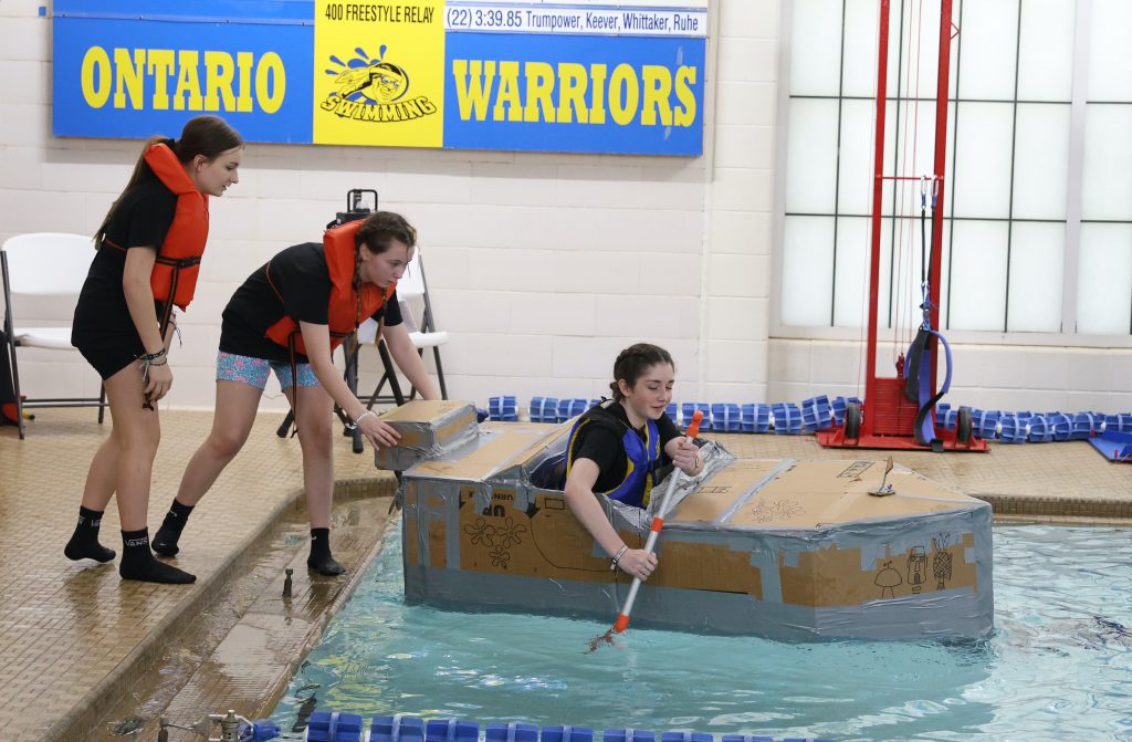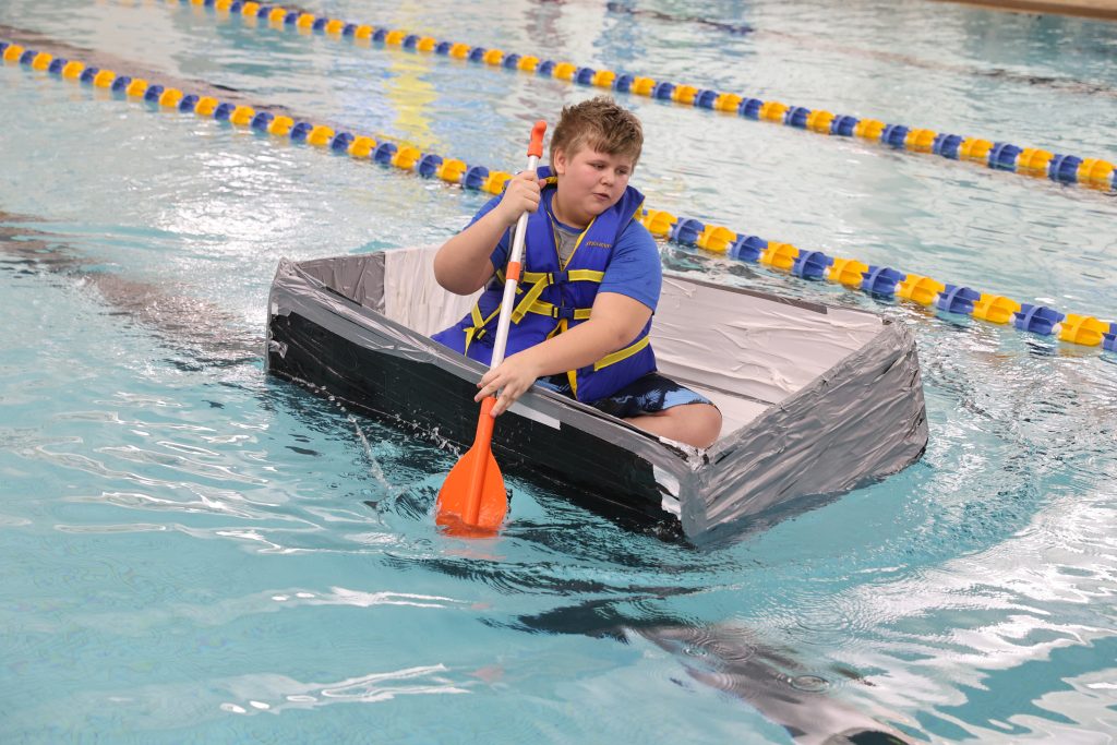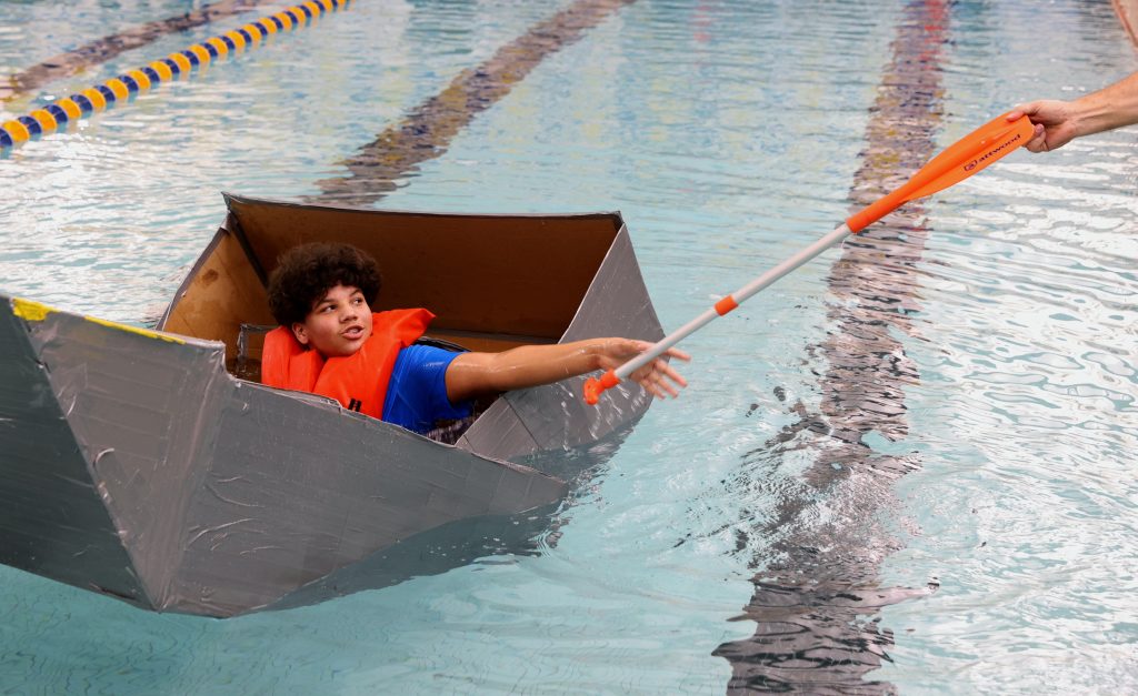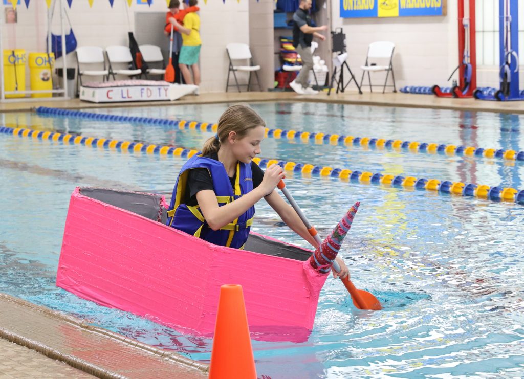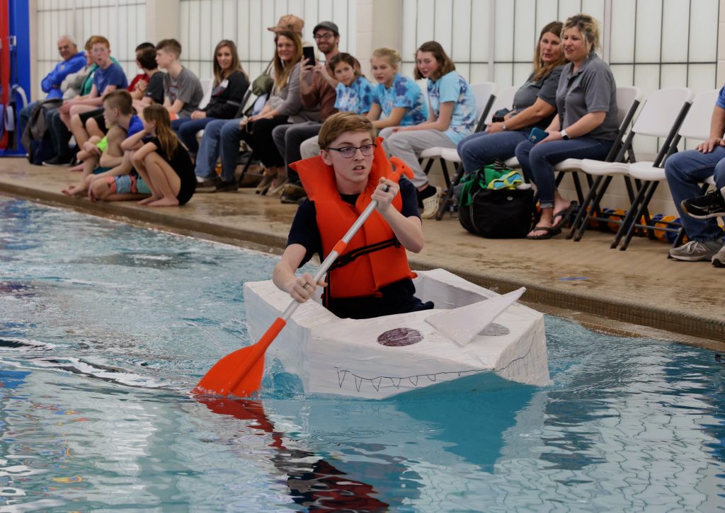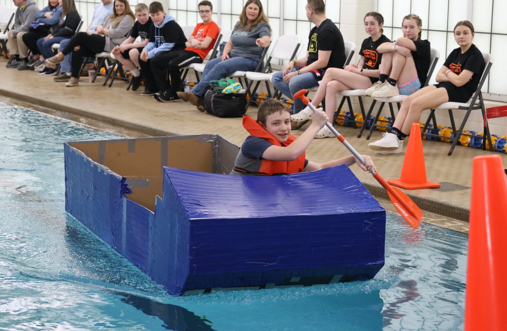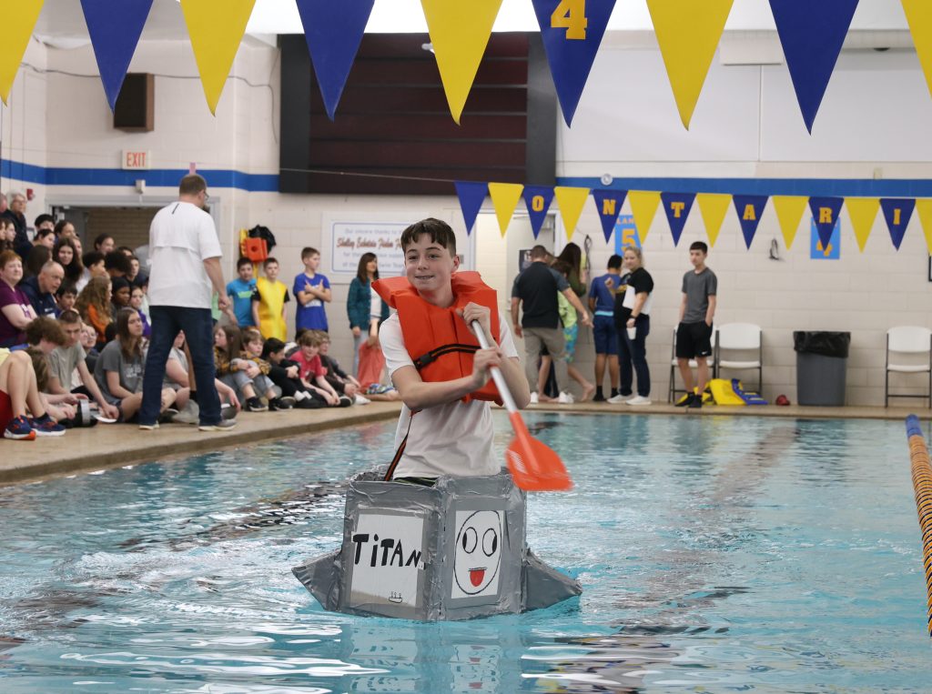 ONTARIO — Austin Chartier could barely see past the front of his boat. The homemade cardboard vessel bowed in the middle, sending the edges of the bow and the stern above his head.