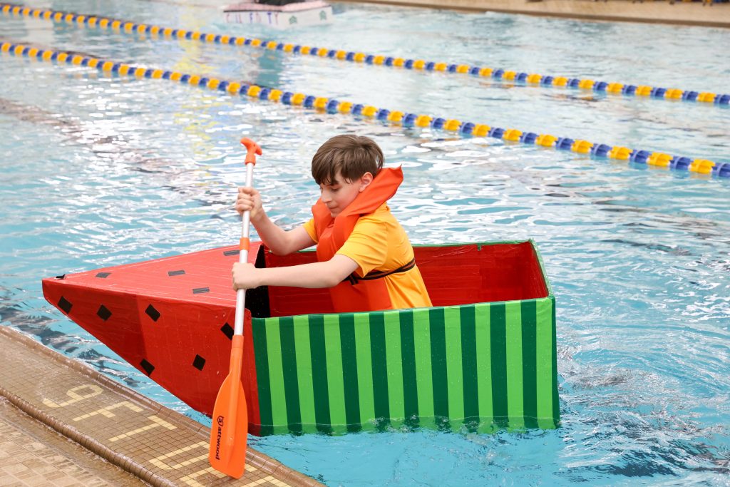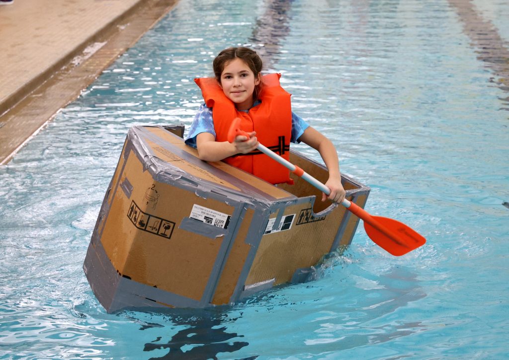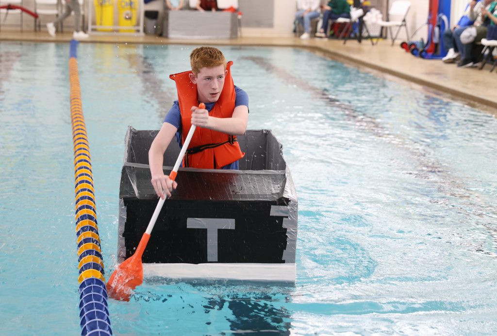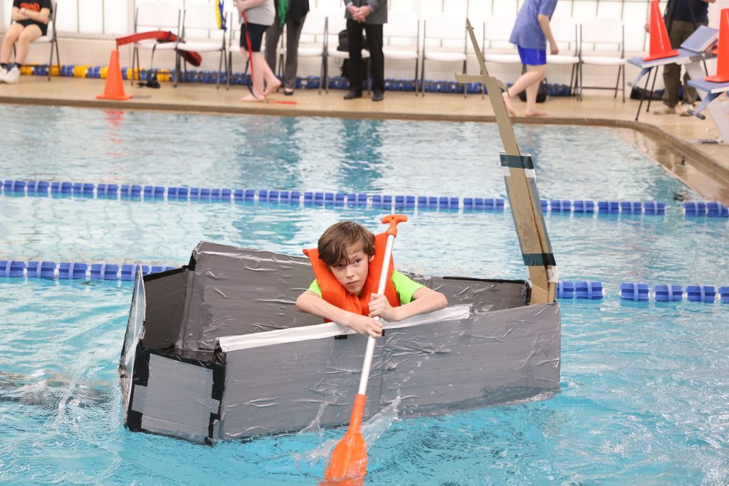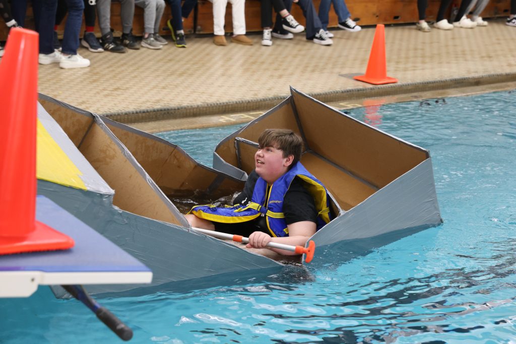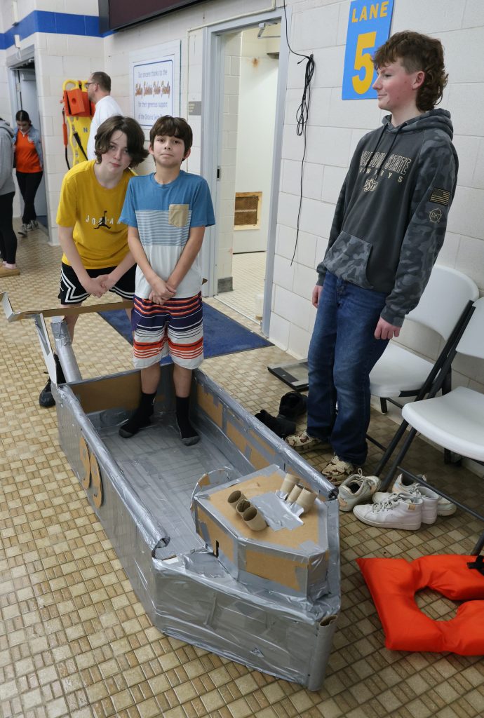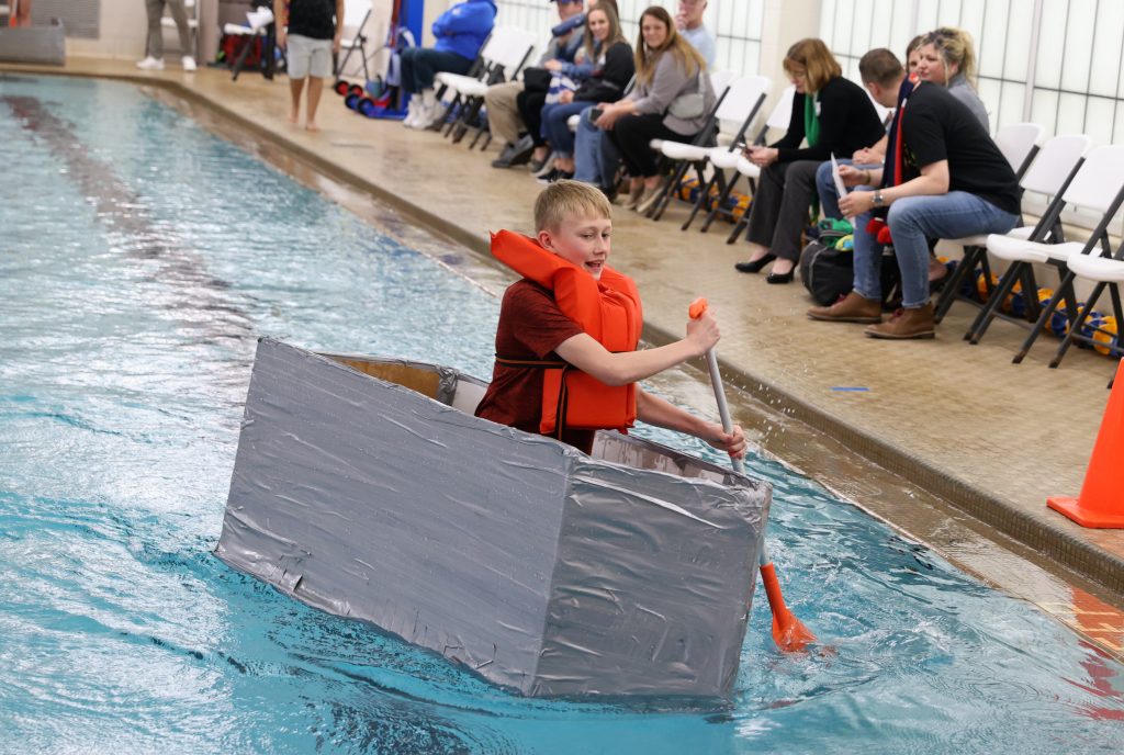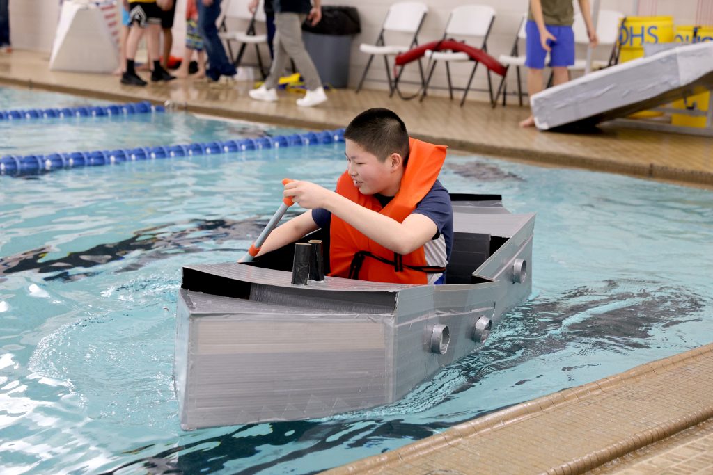ONTARIO — Austin Chartier could barely see past the front of his boat. The homemade cardboard vessel bowed in the middle, sending the edges of the bow and the stern above his head.